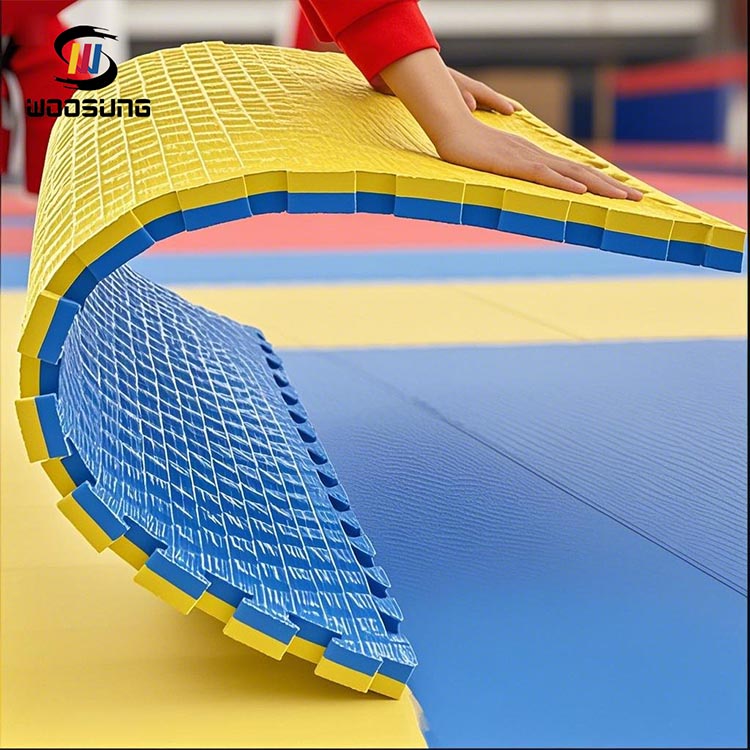 WOOSUNG®Τα χαλάκια Taekwondo Tatami είναι κατασκευασμένα από επιλεγμένους αφρούς υψηλής πυκνότητας για να εξασφαλίσουν την εξαιρετική αντοχή, την απορρόφηση και την ελαστικότητά τους. Ο μοναδικός σχεδιασμός δομής κλειστών κυψελών όχι μόνο διασφαλίζει ότι τα πατάκια είναι σταθερά στην απόδοση υπό μακροχρόνια χρήση, αλλά έχουν επίσης αδιάβροχες και αντιβακτηριδιακές λειτουργίες, καθιστώντας τα ιδιαίτερα κατάλληλα για χρήση σε δημόσιους χώρους προπόνησης. Τα πατάκια έχουν λεία επιφάνεια και ισχυρό κράτημα, παρέχοντας σταθερή υποστήριξη για κινήσεις υψηλής έντασης, όπως κλοτσιές και άλματα, μειώνοντας σημαντικά τον κίνδυνο ολίσθησης.